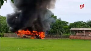 consumindo o ônibus. Moradores da comunidade compartilharam o vídeo nas redes